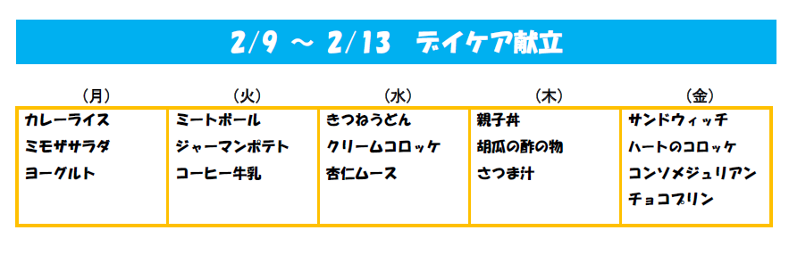 2月 デイケア予定表